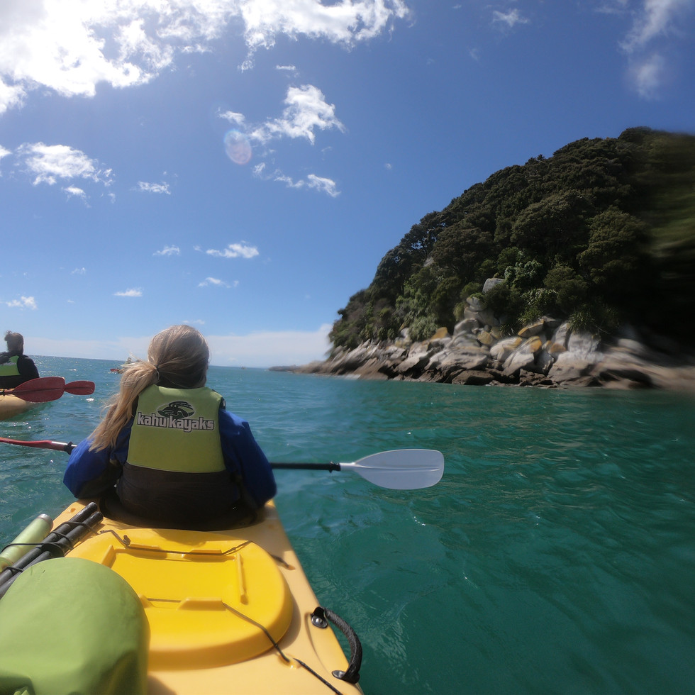 We booked a tour with Abel Tasman Kayaks through the Adventure Lodge and got lucky with the weather the day of our tour. We woke up early and headed down the road to the rental and tour company. There was a food truck on the premises which served coffee for all of the early risers (thank god), and although we didn't have much time to eat, their chef apparently makes a great mussel burger which you have to try if you ever find yourself there.